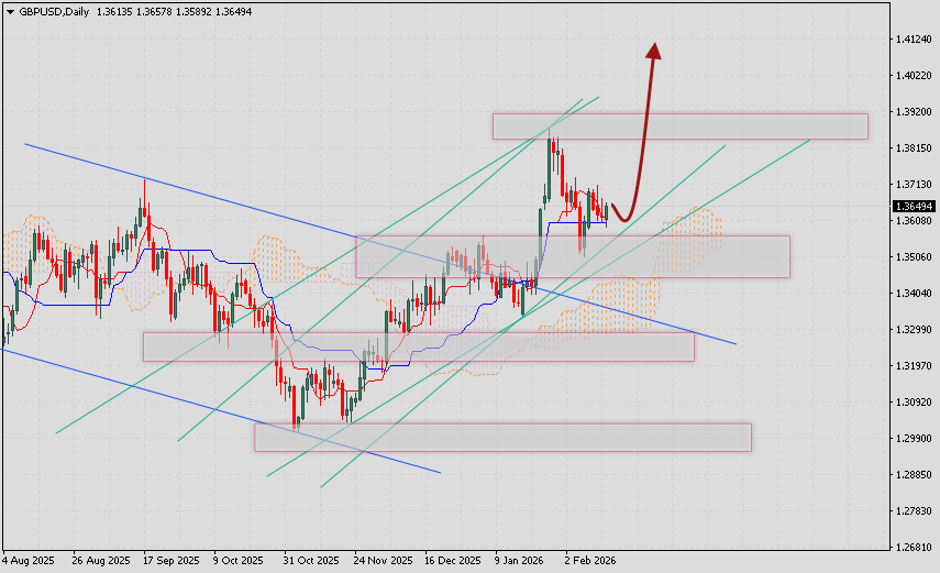 Таким образом, Фунт Доллар прогноз GBP/USD на 16 — 20 февраля 2026 предполагает попытку развития медвежьей коррекции с тестом уровня 1.3605. Откуда стоит ожидать отскок и продолжения роста валютной пары с потенциальной целью вблизи уровня 1.4125. В пользу подъёма выступит тест области поддержки. Отменой варианта роста актива выступит пробой области 1.3105. В этом случае стоит ожидать продолжения падения Фунт против Доллара США с целью ниже области 1.2775.